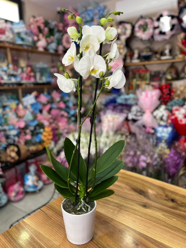seramik içersinde beyaz çitf dal orkide